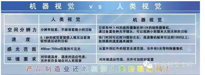 機(jī)器視覺(jué)的應(yīng)用主要有檢測(cè)和機(jī)器人視覺(jué)兩個(gè)方面: ⒈ 檢測(cè):又可分為高精度定量檢測(cè)(例如顯微照片的細(xì)胞分類(lèi)、機(jī)械零部件的尺寸和位置測(cè)量)和不用量器的定性或半定量檢測(cè)(例如產(chǎn)品的外觀檢查、裝配線上的零部件識(shí)別定位、