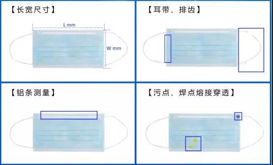 MVS口罩視覺檢測系統是西安海克易邦光電有限公司基于自主開發的視覺平臺MVS,開發的專用于檢測口罩的視覺系統。該系統能有效檢測口罩正反面污漬,焊點銜接口、長寬尺寸、排齒、瑕疵等問題,剔除口罩在生產過程中出現的以上不良品,提高產品生產速度。