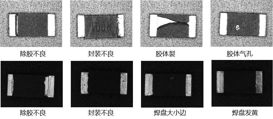 貼片電阻視覺檢測系統(tǒng)用于整片貼片電阻在切割前的外觀檢測,主要檢測電阻正反面是否有除膠不良、膠裂、膠體、氣孔等。適用于點膠前及點膠后的各種類型檢測。