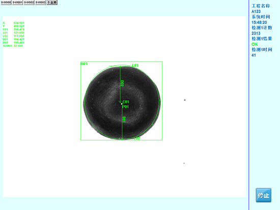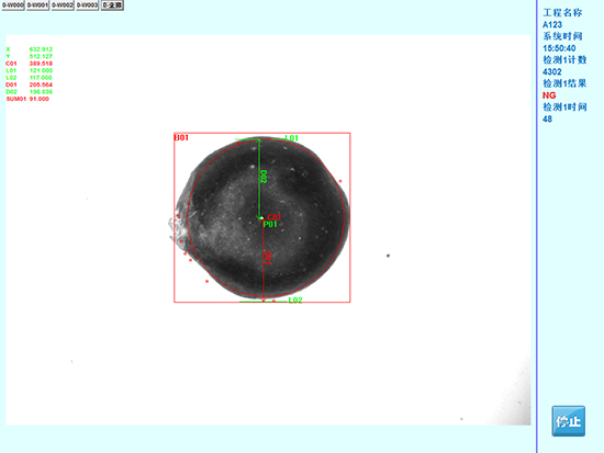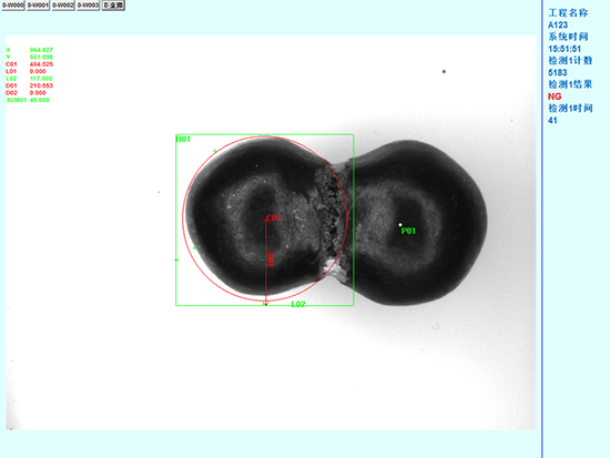 本公司基于機器視覺圖像處理技術研發(fā)在藥粒檢測過程中,需進行藥粒上白點、藥粒圓不圓、藥粒的粘連、藥粒的色澤正確等功能,檢測完成后輸出OK、NG信號,在排廢位進行剔除動作。本系統(tǒng)將通過快速獲取在線對藥粒的圖像,通過圖像識別、分析或計算獲取藥粒特征信息,來判斷是否符合要求,并輸出控制信號。系統(tǒng)主要模塊有:觸發(fā)定位模塊,圖像處理模塊、控制模塊。根據用戶需求,樣品移動到檢測位時觸發(fā)相機、視覺系統(tǒng)輸出檢測信號,從而完成檢測功能。