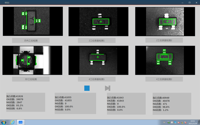設(shè)備采用四相機(jī)多工位檢測;