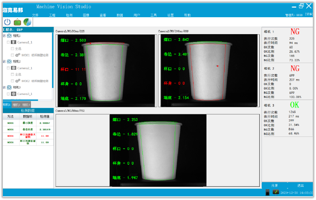 外側(cè)壁全域檢測(cè):全方位掃描紙杯外壁,缺陷、污漬無所遁形,檢測(cè)結(jié)果同步信號(hào)輸出,質(zhì)檢全程可追溯、可管控。