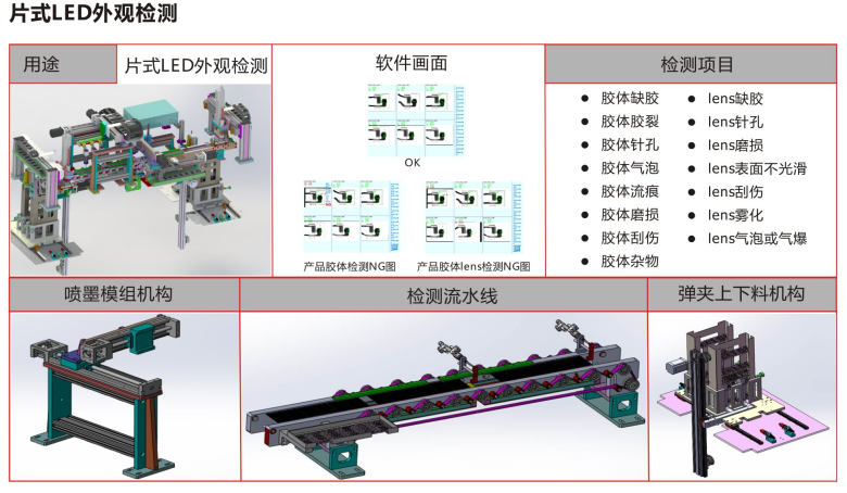 LED視覺檢測系統由我司自主研發,用于貼片LED檢測,該系統集本公司在機器視覺工業檢測領域多年技術積累,同時結合時下最新的用戶特點及實際需求而推出。產品具有集成度高,操作簡便,設置靈活,穩定可靠等優點。