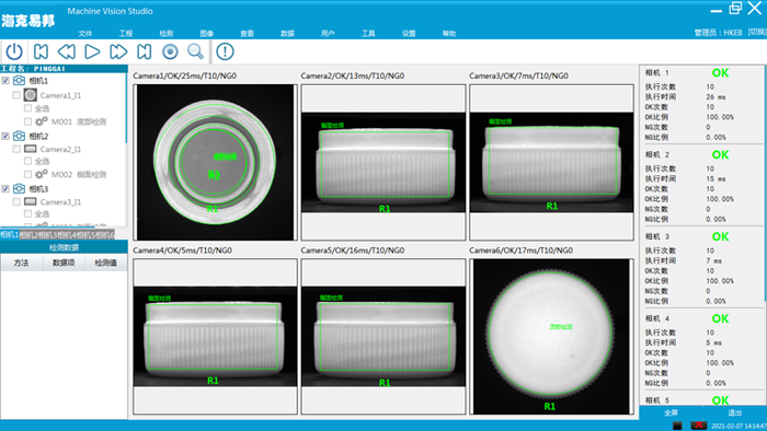 瓶蓋頂部、底部、側(cè)面軟件檢測界面