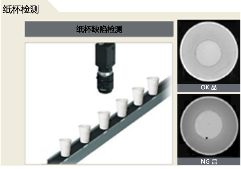 功能:紙杯外側壁缺陷檢測、污漬檢測,檢測結果IO信號輸出。